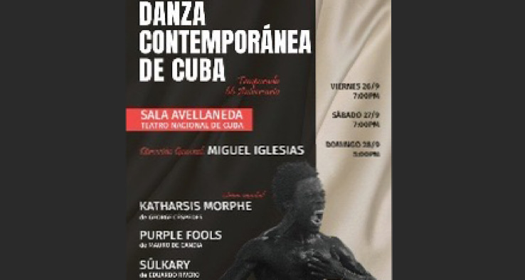 Se anuncia la próxima temporada de Danza Contemporánea de Cuba en la sala Avellaneda del Teatro Nacional de Cuba, los días 26, 27 de septiembre a las 7:00 p.m. y 28 de septiembre a las 5:00 p.m.